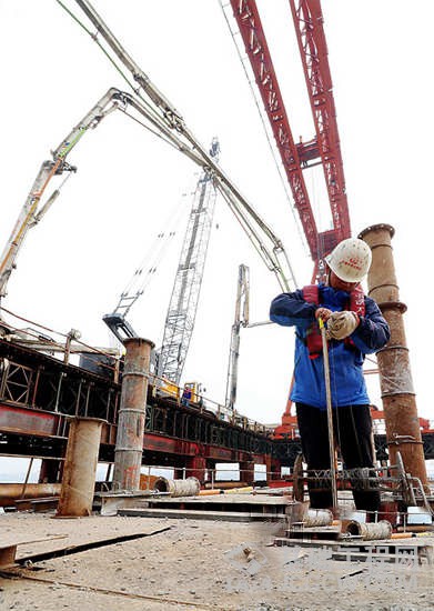 此次4号主塔墩围堰封底厚度为6米,分为3个区域,按照先边后中、先低后高的原则与顺序进行施工,历时83个小时灌注混凝土6981立方米。