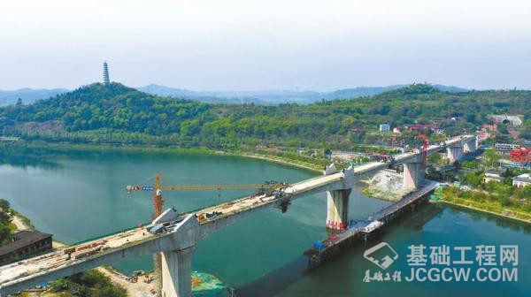 内江三元沱江特大桥属于公铁两用大桥,该连续梁跨越内江沱江、内江市污水处理厂、内椑路、成渝铁路内江东站进出站咽喉区等多条线路。