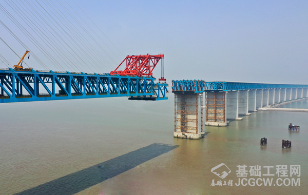 江苏:沪通长江大桥主航道钢梁架设近半