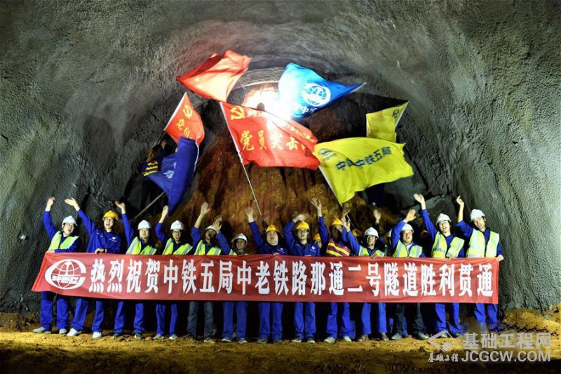 核心提示:4月15日,在老挝乌多姆赛省,中国中铁五局员工在那通二号隧道内庆祝隧道贯通。 由中国中铁五局承建的中老铁路那通二号隧道和纳