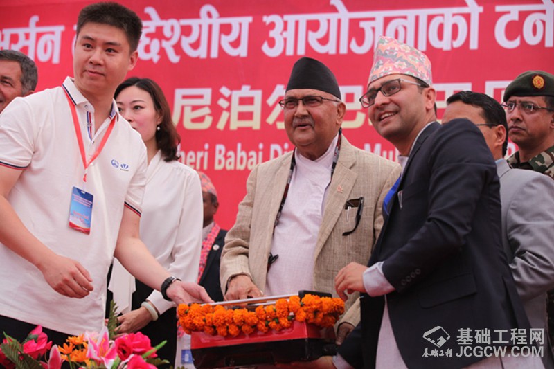 核心提示: 4月16日,尼泊尔西部苏尔凯德县,尼泊尔总理奥利(中)按下启动按钮,让掘进机打通全长12.2公里隧道的最后几十厘米。 由中