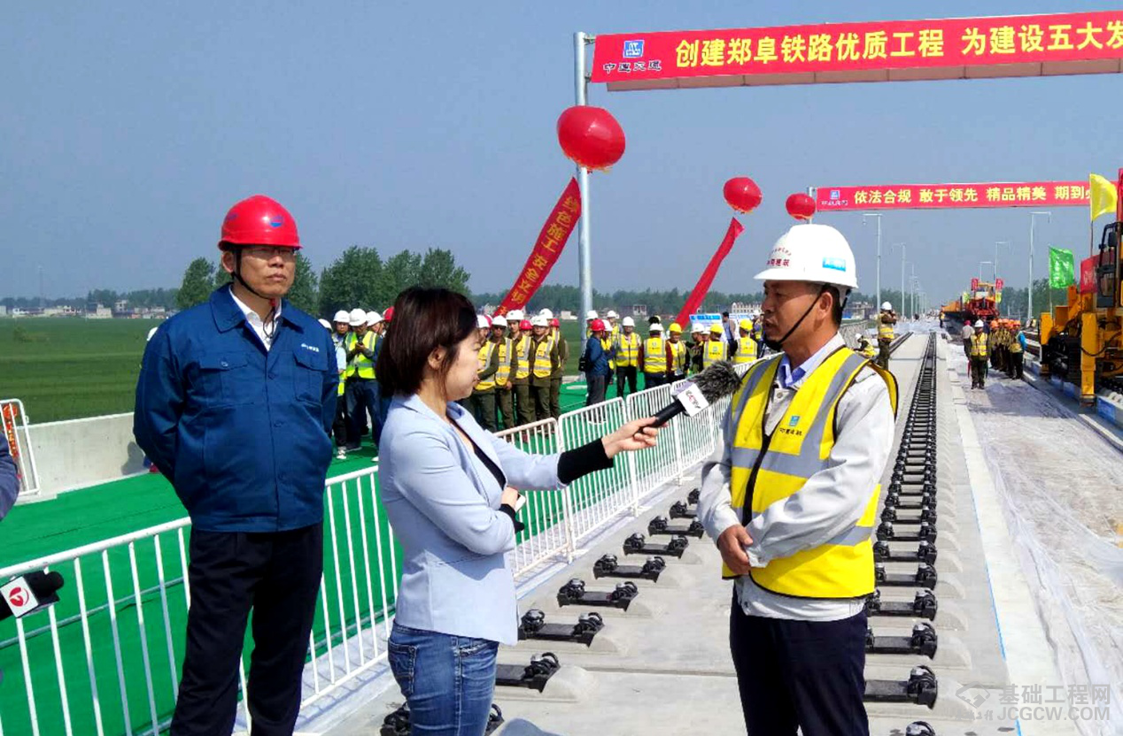 中建交通郑阜高铁安徽段项目经理李士香表示,该项目采用目前国内先进的新型CRTSⅢ型板式无砟轨道,控制性工程界临特大桥是全国首座五跨曲弦钢桁加劲连续梁铁路桥。