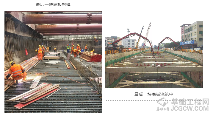 为保证结构底板施工顺利进行,项目部结合现场实际,联合工程、安质、物资、机电等部门 ,精心组织,制定切实可行的施工方案。针对施工过程中可能出现的问题,认真分析,周密部署,制定详细预案。同时,在施工过程中,施工单位严控关键部位及关键环节,对每个工序施工实施交验制度,24小时严格监控施工情况,及时反馈,确保顺利完成封底。