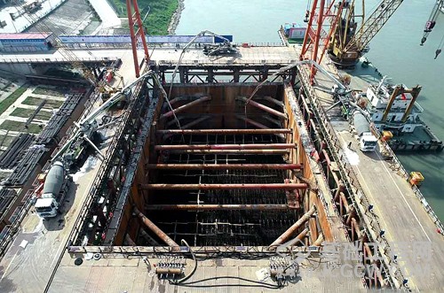 鳊鱼洲长江大桥首座主塔墩第一层承台浇筑成功