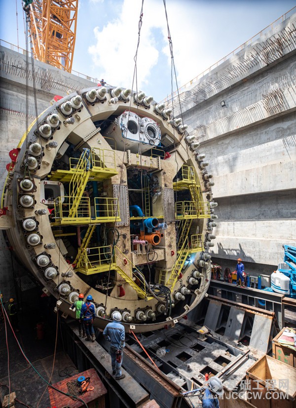 目前,一期进口段始发竖井主体结构混凝土、75根隔离桩、刀盘、主驱动箱等盾构设备地面焊接等工作已顺利完成。