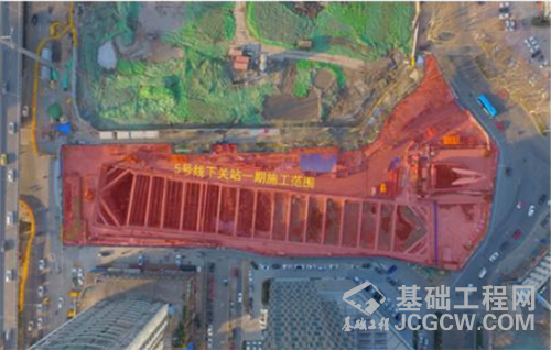其中,下关站为 5 号线与规划 9 号线换乘站,位于中山北路与热河南路交叉口,车站总长 345m,标准段宽 22.7m,深 17.2m,端头井深 19.2 — 19.4m,基坑开挖范围均为淤泥质粉质黏土。自一期基坑土方开挖以来,5 号线工程管理处会同现场各方提前谋划、精心组织、科学管理,克服了地质条件差、土方外运困难、周边工地交叉施工影响等困难,于 4 月 21 日晚上顺利完成了首段底板浇筑。