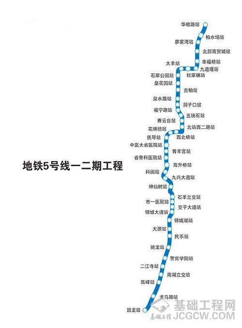 5号线一二期工程线路全长约50公里,始于大丰停车场和华桂路站、止于回龙站和回龙车辆段,设车站41座,其中高架车站5座。线路呈南北走向,建成后将有效缓解南北向交通拥堵情况,分担既有线运载负荷,为市中心乃至沿线市民出行提供便利。