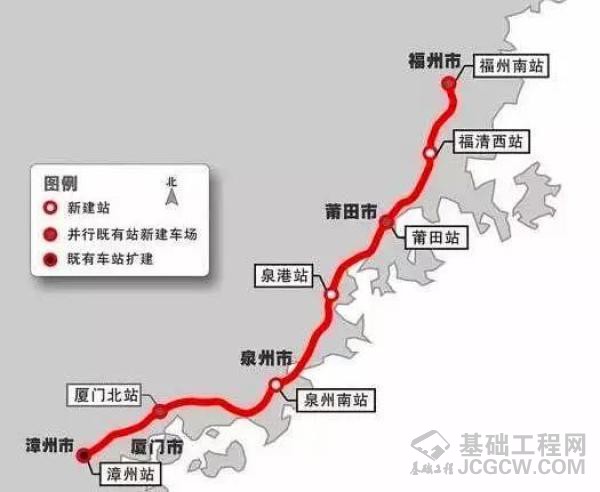 福厦高铁是全国首条跨海高铁,也是福建省速度等级最高的铁路,设计时速350公里,正线全长277.42公里,北起福州市,途经莆田、泉州南至厦门和漳州市,全线共设7座车站。