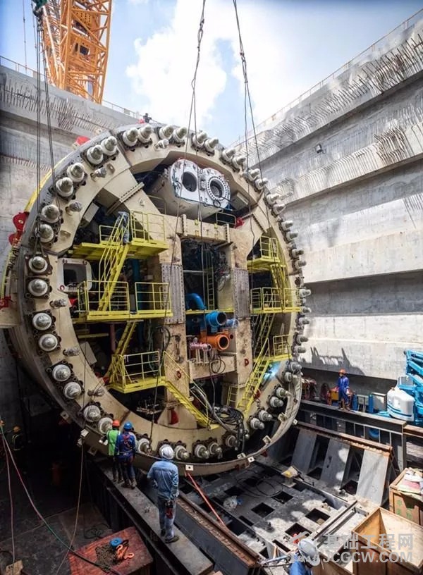 目前,一期进口段始发竖井主体结构混凝土、75根隔离桩、刀盘、主驱动箱等盾构设备地面焊接等工作已顺利完成。