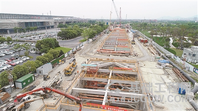 杭海城际铁路余杭高铁站4号基坑底板顺利浇筑
