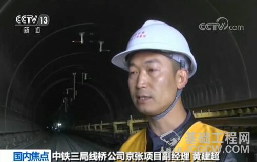 中铁三局线桥公司京张项目副经理 黄建超:这个隧道全长12.974公里,是连续千分之三十的上坡。(隧道的)曲线半径是4500(米),施工难度非常大。正盘台隧道也是京张线包括崇礼铁路全线最长的隧道。