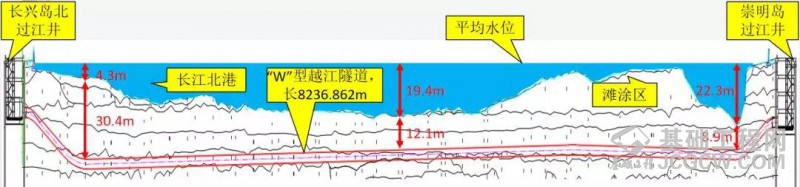 隧道A线段掘进既要穿越土层,又要行经水域。线路起始于长兴岛北工作井,将穿越长兴岛北子江堤、长江北港水域、崇明岛主江堤后,上行接入崇明岛工作井。长兴岛工作井深23米,崇明岛工作井深度更达28米,且所处区域为回填地块,地质不佳,要完成这两处深基坑建设难度不小。