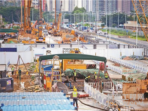 深圳市城市轨道交通14号线全长50余公里,起自福田区岗厦北枢纽,向东北延伸经过罗湖区和龙岗区,止于坪山区沙田站,是轨道四期建设进展最快的线路。5月29日,记者在走访地铁14号线土建五工区时了解到,目前,该工区各项建设正稳步推进,部分站点进入主体施工阶段。其中,宝龙站主体工程咬合桩完成已达100%。图为地铁14号线施工现场。