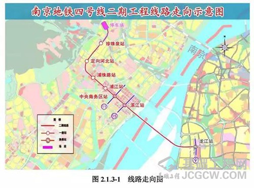 环评公示显示,此次工程可行性研究方案中,南京地铁4号线二期工程基本走向与规划中一致,线路全长10.0km, 均为地下线,设车站6座,均为地下站,即珍珠泉站、定向河北站、浦珠路站、浦江路站、滨江站、龙江站。新建翠山路停车场,主变利用11号线浦江主变,控制中心利用既有灵山控制中心。