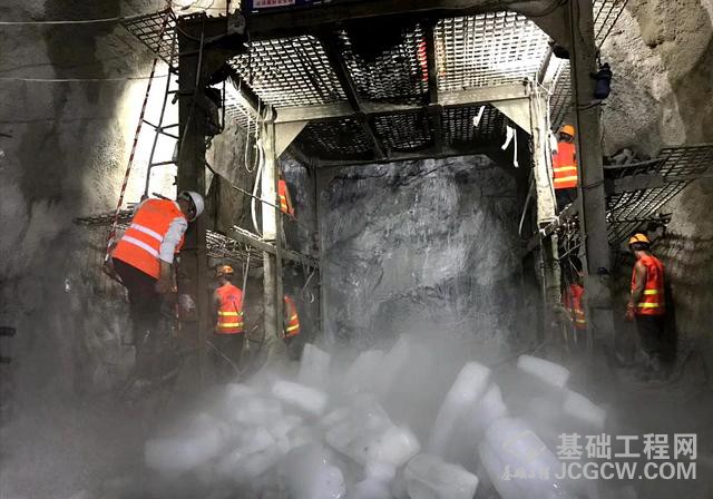 同时,隧道的另一端还面临反坡排水以及高地温,洞内施工环境温度最高达42℃,且湿度达80%以上,工人如同在“桑拿房”中完成高强度的施工任务。为了降温,项目部通过不停的给隧道施工最前方的掌子面运送冰块;工人每作业一个小时,就要在隧道掌子面的冰块上休息15分钟左右再次投入施工。