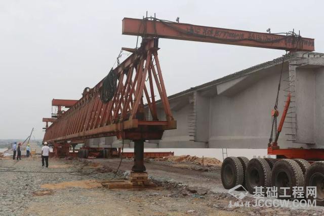 此次安装T梁的王安石抚河特大桥全长1417米,为抚州东外环高速公路控制性工程。为确保首片T梁板的成功架设,抚州东外环路基三分部项目部高度重视、精心组织、提前部署,成立了由项目总工为首的梁板安装专业领导小队,制定了详细的吊装施工方案,对拖车、架桥机进行全面的检查,同时,周密部署安装小队中各人的任务,对安装操作人员进行技术交底,确保T梁从吊梁、运输、落梁等环节精细操作,规范施工,从而保证了首片梁板一次性安装成功。