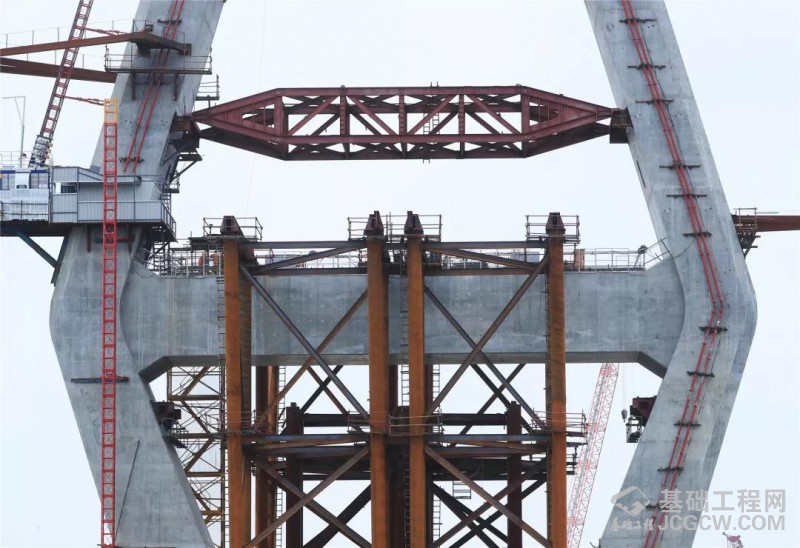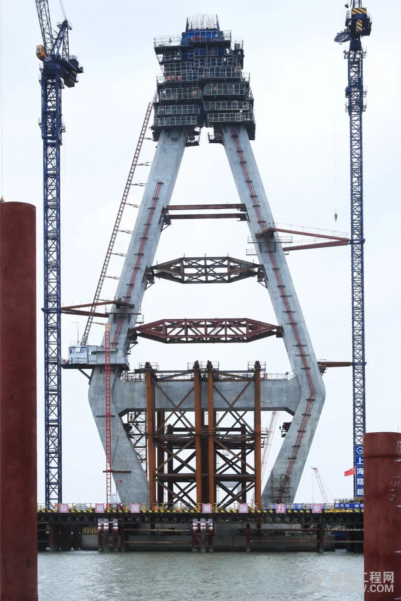 上海昆阳路大桥主塔标高突破100米,“钻石”塔身雏形初现