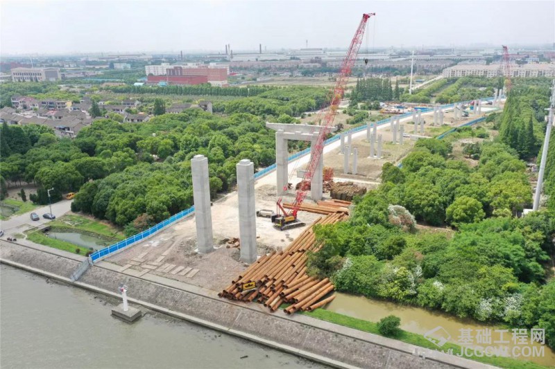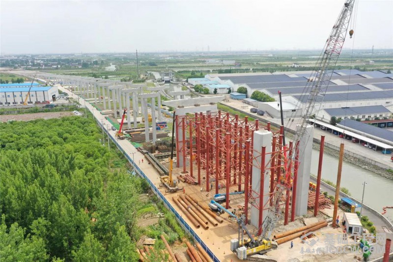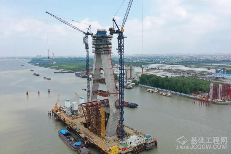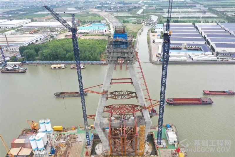 6月11日,昆阳路越江大桥主塔标高突破100米。