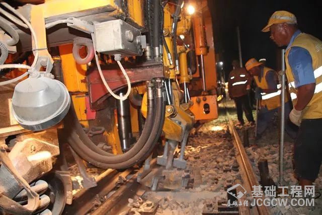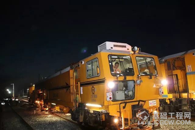 据中铁十一局集团徐盐铁路项目部负责人介绍,徐盐铁路岔捣作业采用CDC-16道岔捣固车进行,该设备具有程序控制、计算机核算处理、半自动化及自动化功能,是校正线路几何尺寸、延长钢轨使用寿命、提高施工效率、保证行车设备安全的铁路重器,可按预先设定的轨道几何参数一次性完成道岔区单枕起道、拨道、抄平、捣固、枕端夯实作业,大大提高了整组道岔的平顺性。