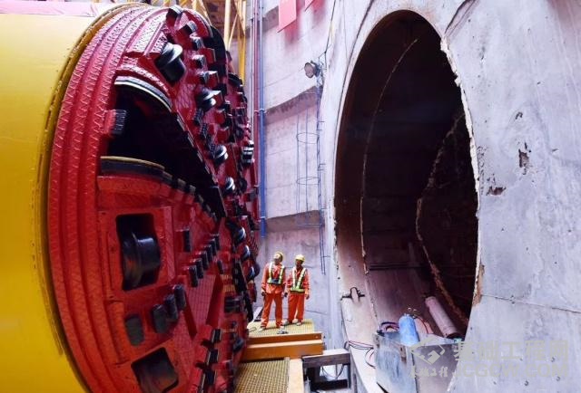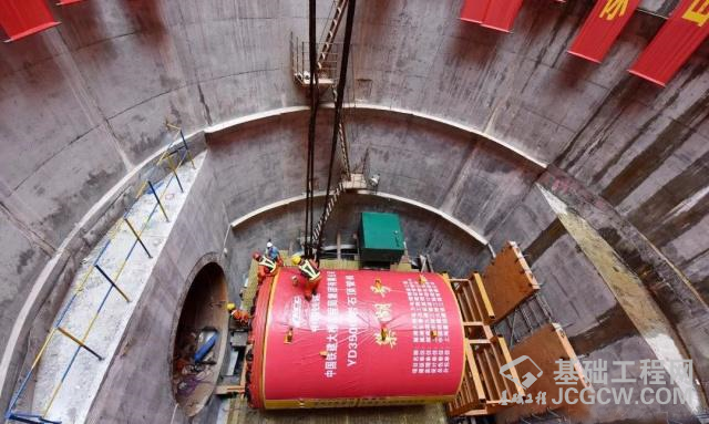 据介绍,隧道整体穿越中风化砂砾岩层,顶管施工采用自主研发设计的遥控式泥水平衡岩石顶管掘进机,此台顶管机总重量超过100吨,设计新颖。