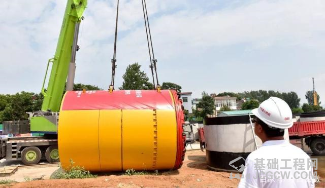 核心提示:6月25日下午,伴着大型起重机的嗡嗡声响,一台重达100余吨的顶管掘进机,被成功吊入40余米深的工作井内。至此,巢湖史上首条湖底