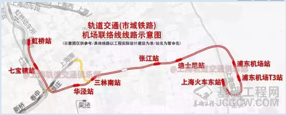据了解,机场联络线约68公里,规划设站9个,它从虹桥枢纽站出发经过沪杭铁路外环线,七宝,华泾,三林,张江,迪士尼,浦东国际机场等重要地区,最后达到上海东站。
