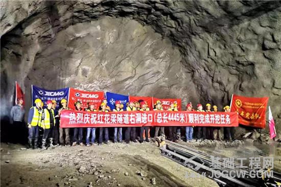 红花梁隧道贯通仪式,历经25个月的奋力攻坚,由徐工TZ3A三臂凿岩台车承担施工任务,万龙至转枝莲公路红花梁隧道右线,7月3日顺利贯通。