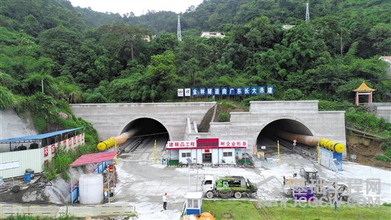 金林隧道是云茂高速唯一一座超过3000米的特长隧道,其设计为分离式特长隧道,左洞3448米,右洞3466米,隧道左线最大埋深约317米。隧道右洞预计8月初贯通。