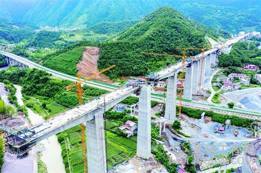 7月18日,郑万高铁保康段后坪镇天池特大桥加紧施工。郑万高铁保康段总里程63.2公里,桥梁11座,隧道12座,桥隧比达99.6%。截至目前,桥梁完成桩基1178根,完成总工程量的93%。郑万高铁是郑渝高铁的重要组成部分,预计2022年全线建成通车。