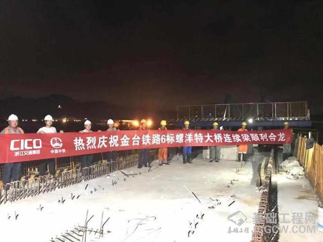 为保障金台铁路路桥段螺洋特大桥连续梁成功合龙,7月28日20时,该路段承建单位中铁十局开始施工,并于7月29日凌晨完成合龙作业。