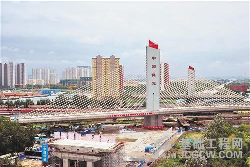 据介绍,该桥梁为保定乐凯大街南延工程转体斜拉桥,其由北向南跨越了京广铁路大动脉的21条铁路线。为最大限度减少对交通影响,施工采用了国际领先的子母塔双转体技术。转体球铰由中船重工第七二五研究所洛阳双瑞特种装备有限公司制造,6.5米的球铰直径也刷新了世界纪录。