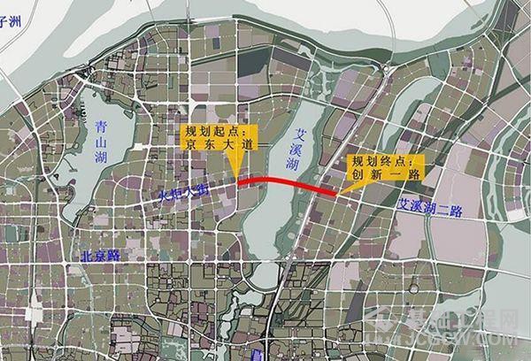 根据批复的信息,艾溪湖隧道工程西起京东大道,沿现状火炬大街线位方向下穿艾溪湖、艾溪湖湿地公园,东岸与艾溪湖二路对接,止于创新一路。管理中心位于高新八路与金庐南路交叉口东南侧地块内(原高新海关大楼)。