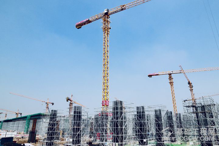 在雄安站综合交通枢纽施工现场,记者看到,工地上塔吊林立,焊花飞舞,工人们精益求精,干劲十足,一派繁忙景象。