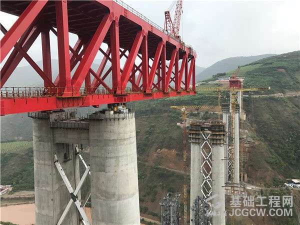 据现场介绍,大桥共有4根桥墩,其中主墩3号墩设计高度达154米,为世界同类桥梁最高墩,目前已浇筑至150米,剩余4米将分两次完成。同时,该桥也是我国首次建造的大跨度上承式连续钢桁梁铁路桥,其249米的主跨也将刷新世界建桥记录。大桥上部结构钢桁梁设计56节,目前正在进行剩余30节的安装。为确保顺利封顶,现场旁站、后勤服务、机械调配、材料储备及供应、混凝土车辆巡视安排等各环节都做到了密切配合。