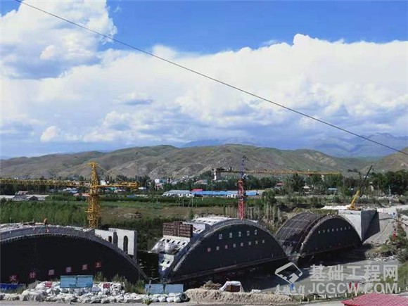 山东省路桥集团有限公司项目一标项目经理薛军说,喀什河每年到了6月中旬会迎来汛期,为了保证大桥按期完工, 减少环境污染,他们采用筑岛围堰的方法,利用大型冲击成孔设备,在主河道内完成了36根直径为1.2 米的钢筋混凝土临时桩基,用于支撑拱桥满堂支架下部施工平台的搭设,保证汛期大桥施工不受影响,河道不受挤压,满堂架施工平台安全稳定。