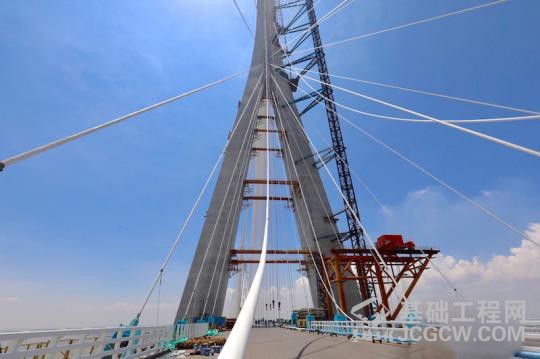 核心提示:图为工人正在桥面上加紧施工。 宋恒 摄中新网南通8月6日电 (杨颜慈)波光粼粼的长江南通段江面上,一条跨江腾出的巨龙已露出铮铮