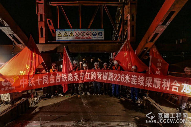 8月5日,记者从中铁十局有限公司金台铁路6标项目经理部获悉,金台铁路永宁江特大桥跨黄椒路(40+60+40)米连续梁顺利合龙。