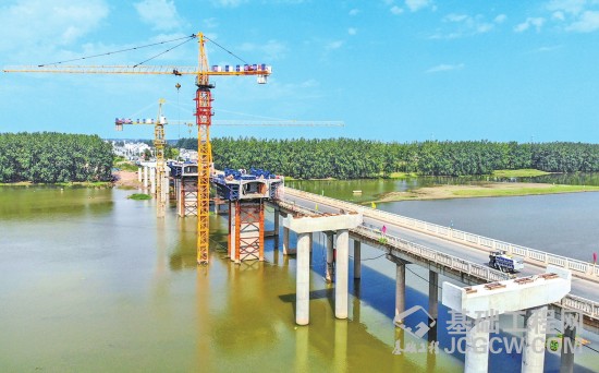 该工程自今年3月份进行桩基开钻以来,目前已完成左幅大桥的所有水下部分施工,并全面转入上部结构施工,累计完成货币工程量2000余万元,完成工程的形象进度达60%。预计今年底万城大桥新建桥梁的左幅部分将建成通车,2020年开始实施老桥拆除及右幅桥梁施工,全桥计划2021年上半年完工交付使用。
