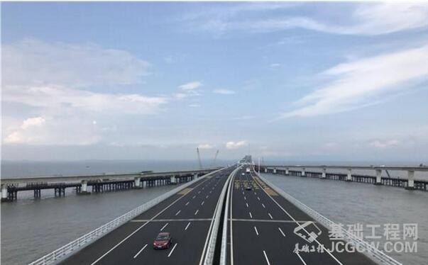 ▲胶州湾大桥主线两侧为全线桥梁贯通的胶州连接线匝道。