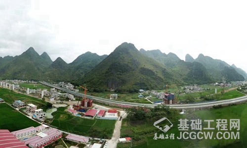 位于广西壮族自治区河池市都安县境内的澄江双线特大桥全长15.5公里,不仅是贵南高铁全线最长的一座特大桥梁,也是广西现有建成铁路桥梁中最长的一座。大桥的建设可谓亮点纷呈,除了180米拱加劲大跨度连续梁外,还首次采用56米大跨度节段拼装梁的施工方案,节段拼装梁施工不用搭支架,不用现场砼浇筑和养护,桥下场地也不用经过大范围特殊处理,对周围环境污染很小,还能避免施工过程长时间搭设支架而影响交通,该施工方法在广西目前铁路桥梁建设史上也是首次亮相。截止8月26日,澄江双线特大桥完成桩基2506根,占设计总量的92%;完成承台403座,占设计总量的92.6%;完成墩台399座,占设计总量的92%,大桥预计将在2020年四季度末竣工。