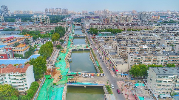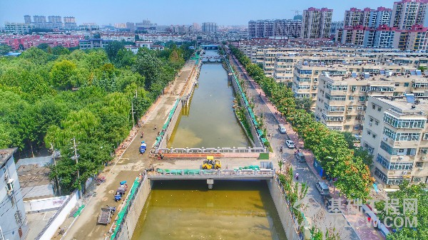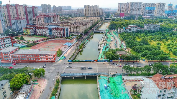 8月31日,在兴济河下游生态综合治理工程施工现场,新建的6座跨河桥主体全部建成,开始进入桥面铺设和两侧护栏安装阶段。