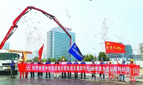 8月31日上午9时,经过9小时连续浇筑,随着最后一斗混凝土泵入,合肥轨道交通4号线6标段淮海大道站主体结构封顶,为该标段完成这一任务的第三座车站。