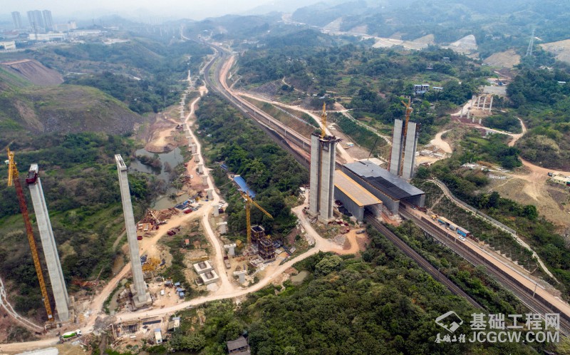据了解,渝长高速扩能项目全长53.265公里,由北新路桥集团承建,其中新房子特大桥全长1395.42米,最高墩达84米,是该项目的最长大桥和第一高墩大桥。大桥33、34号主墩上跨渝怀铁路,采用45+90+45预应力箱梁悬臂现浇跨越,是全线的重点控制性工程之一。