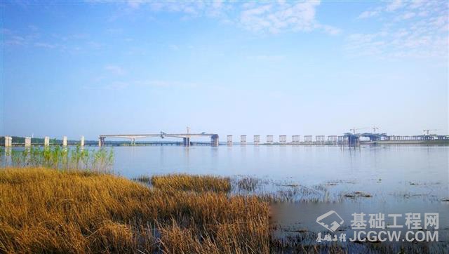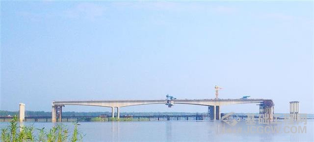 府河特大桥全长1212米,贯穿东西湖区和黄陂区。由中建三局三公司承建的跨河悬浇段长度为260米,桥梁最大单孔跨度120米,是北四环线全线单孔跨度最大、跨径最大的连续钢构桥。
