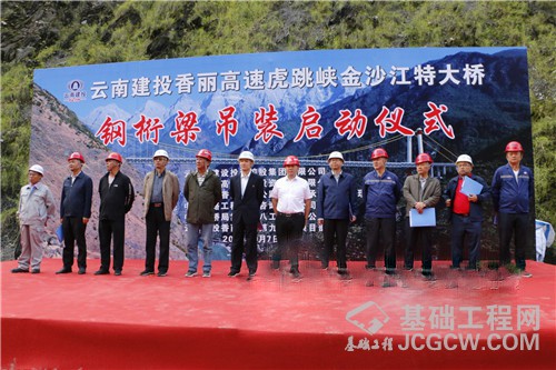 香丽高速公路虎跳峡金沙江大桥启动首节钢桁梁吊装