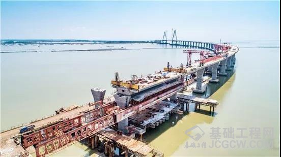 东雷高速通明海特大桥TJ3标西引桥现浇箱梁左右幅共计142孔,采用四套移动模架同步施工。据悉,重达千吨的移动模架造桥机是一种自带模板,利用承台或墩柱作为支承,对桥梁进行现场浇筑的施工机械。其主要特点是施工质量好、施工操作简便、成本低廉等,这四套模架均由湛江海湾大桥建设时的四套移动模架改造而来。在模架改造及施工过程中,陆续进行了底腹板钢筋整体吊装、托架跨越式转运、小曲线半径(横坡)及变坡段(纵坡)移机等关键工序优化,使得单跨施工周期缩短到12天,达到国内外先进水平。