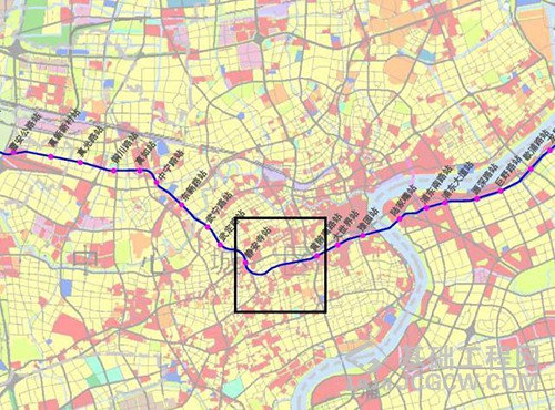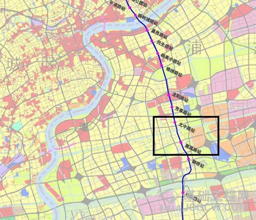 上海市中心三条在建轨道交通的终点站已经在图中标出。