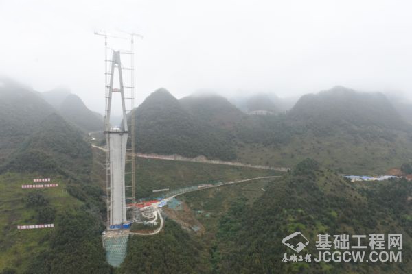 平塘特大桥16号墩塔高332米,巍峨耸立于群山峻岭之中