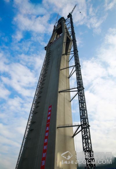 其中,最高的16号主塔塔高332米,相当于110层楼的高度,仅塔身使用混凝土方量就超过了4万立方米,使用钢材总量达7800多吨。较目前国内最高塔苏通大桥主塔(300.4m)高31.6米,为世界第一高混凝土桥塔。