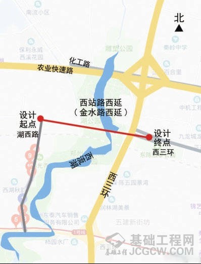 西站路西延(金水路西延)跨西流湖桥梁工程建成后,车主经过西站路西延(金水路西延)西三环时,可直行至湖西路,再往南至建设西路。西三环车流减少,西三环建设路立交桥下容易拥堵的局面也会相应减轻。
